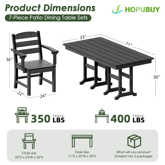 HOPUBUY 7 Pieces Patio Dining Set for 6, 71" HDPE All-Weather Dining Table & Chairs, Durable Outdoor Furniture for Garden, Backyard, Lawn & Poolside (Black)